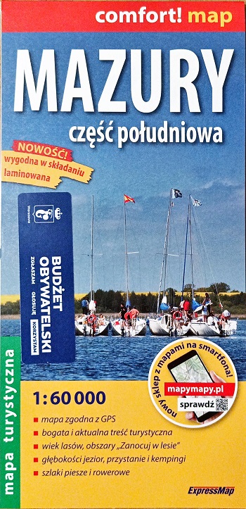 Mazury : część północna : mapa turystyczna 1:60 000 / opracowanie kartograficzne Waldemar Wieczorek, Wojciech Kowalski ; redakcja Aneta Rupniewska, Kamil Saks ; © ExpressMap Polska Sp. z o.o. - Aktualizacja 2023 / redaktorzy wydania Kamil Saks, Agnieszka Karwowska, Katarzyna Stalęga. - Warszawa : ExpressMap Polska, 2023. - 1 mapa : na obu stronach arkusza, wielobarwna, laminowana ; arkusz 48x68 cm, złożona 24x12 cm.