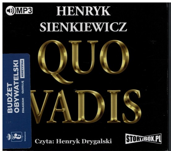 Wykwintny diament historyczny przedstawiający prześladowanie chrześcijan w ostatnich latach panowania Nerona. Świat chrześcijan w kontrze do topiącego się w rozpuście Rzymu. Głównym wątkiem powieści jest miłość Winicjusza i Ligii. Należą oni do dwóch odrębnych światów. Winicjusz jest patrycjuszem rzymskim, Ligia zakładniczką pochodzącą z plemienia Ligów, chrześcijanką. Historii ich uczucia towarzyszą liczne zwroty akcji. Za sprawą miłości i wiary bohaterowie przechodzą przemiany osobowości. Audioksiążka w znakomitej interpretacji Henryka Drygalskiego [opis wydawcy].