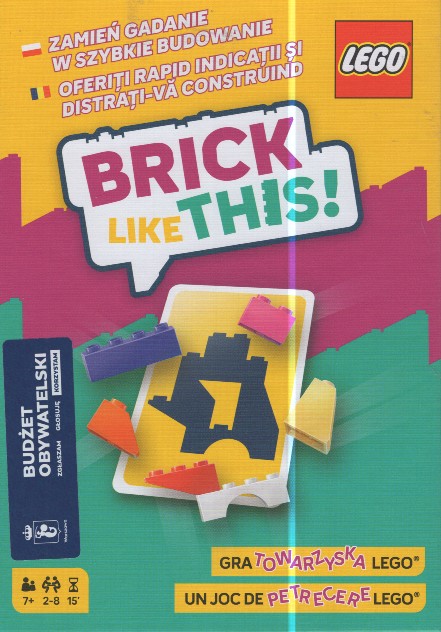 Zamień gadanie w szybkie budowanie! Budowanie z klocków LEGO nie ma przed Tobą tajemnic? Chcesz kreatywnie spędzić czas z rodziną? A może szukasz intrygującej i zabawnej gry imprezowej? LEGO Brick Like This to coś dla Ciebie! W tej dynamicznej grze towarzyskiej dzielimy się na drużyny, które w tym samym czasie próbują jak najszybciej złożyć z klocków kształt wskazany na karcie. Podczas gdy jedna osoba opisuje, co widzi przed sobą, druga stara się zbudować odpowiedni model LEGO. A jeśli takie zadanie jest za proste, czekają na Ciebie specjalne karty wyzwań, które jeszcze bardziej podkręcą zabawę! [opis wydawcy].